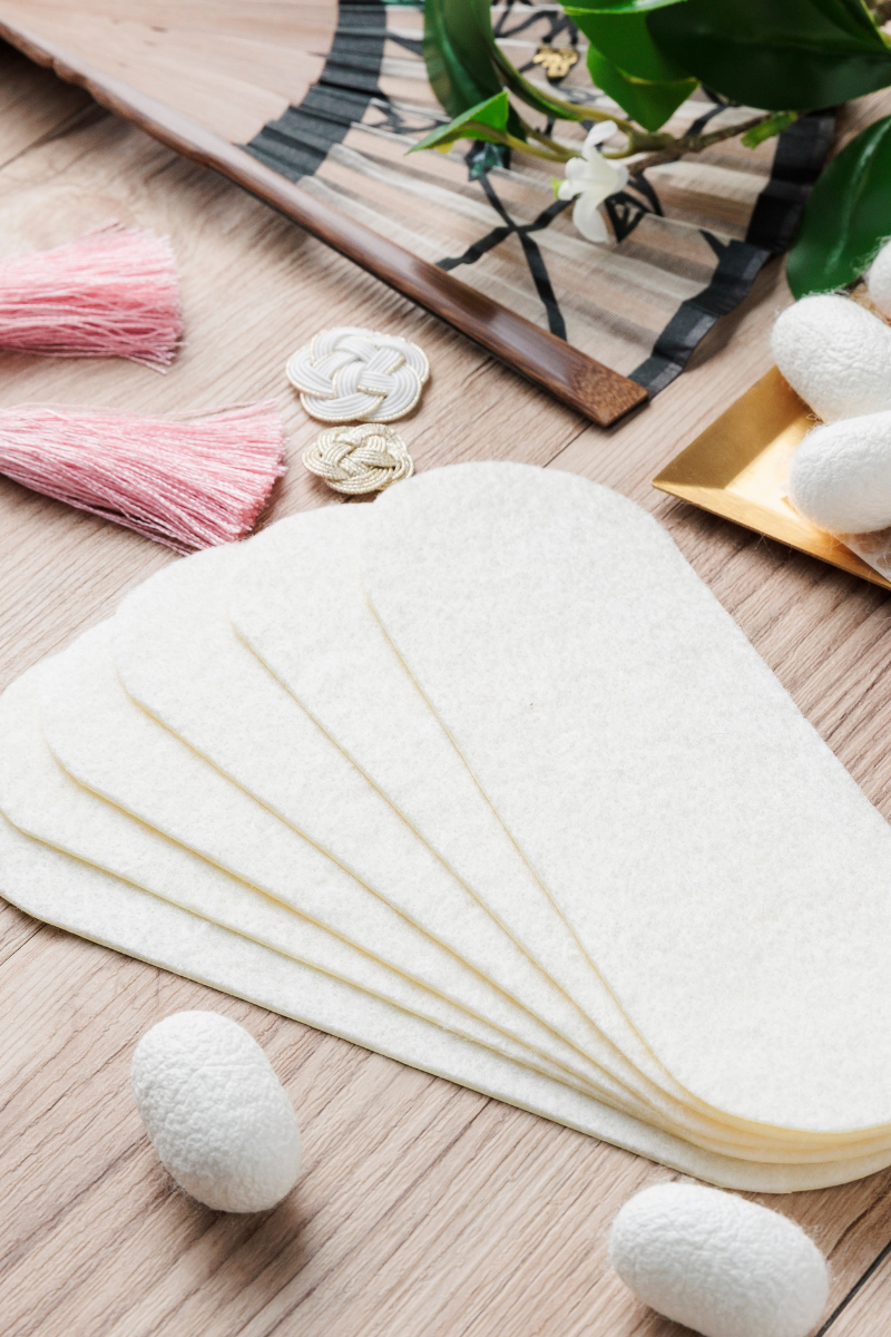 にこだわった、シルク100%フェルトでできたおりものシートです。