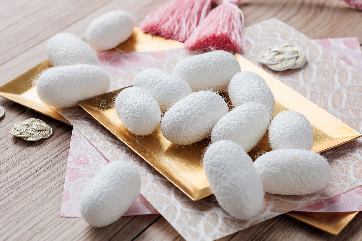 ルナシルクでは、ゆらぎやすい女性の肌に対して、このようなナチュラルでいて機能的な素材であるシルクが適していると考え、商品にはシルクを使用することを基本としています。